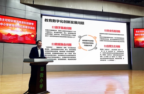12月21日,“自主可控环境下信息科技教学暨中小学教育信创应用展示活动”在京举办。中科可控信息产业有限公司终端事业群总裁于新俊受邀出席,并做相关内容主题演讲,深入介绍中科可控国产化教育终端产品及教育解决方案,并分享了教育行业成功案例。