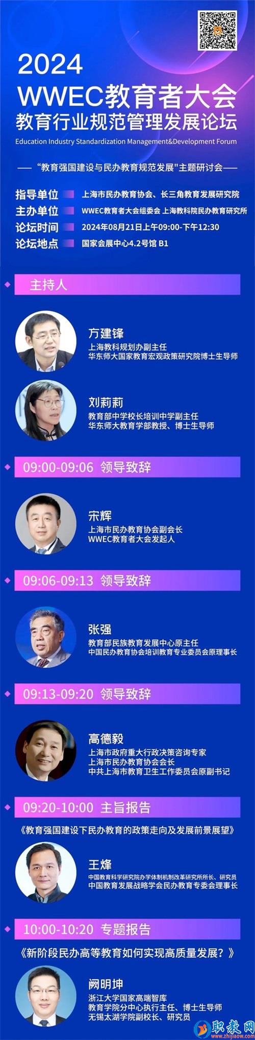 8月21日,由上海市民办教育协会、长三角教育发展研究院作为指导单位、WWEC教育者大会组委会、上海教科院民办教育研究所主办的2024第十届WWEC教育者大会|教育行业规范管理发展论坛,将在国家会展中心(上海) 4.2号馆【B1厅】举办。