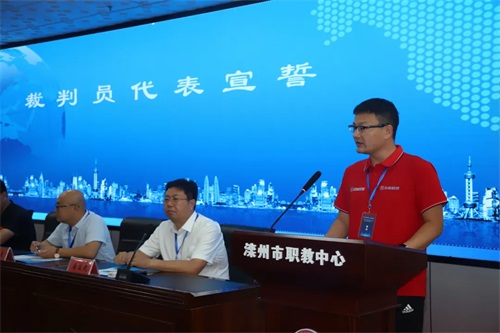 滦州市教育局副局长赵大东致欢迎辞。赵局长首先代表滦州市教育局向莅临大赛指导的各位领导和专家评委表示崇高的敬意!向全体参赛选手、裁判员和工作人员致以诚挚的问候!他指出,此次大赛为广大技能人才搭建一个展示精湛技能、相互切磋技艺的平台。他希望参赛选手坚守在技艺交锋中尽展“匠人”风姿,希望滦州市职教中心按照大赛要求精心组织、认真实施好各项竞赛,努力把此次职业技能大赛办成精品赛事。